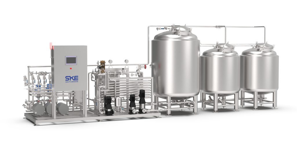 - Automated CIP functionality is included through pneumatically controlled valve manifolds and programmable loop selection via HMI. The CIP system is semi / full-automatic, meaning the operator selects each CIP step manually on the existing CIP trolley unit (which includes heating and pumping functions). The system automatically routes the CIP liquid to the correct process sections according to the selected cleaning loop.