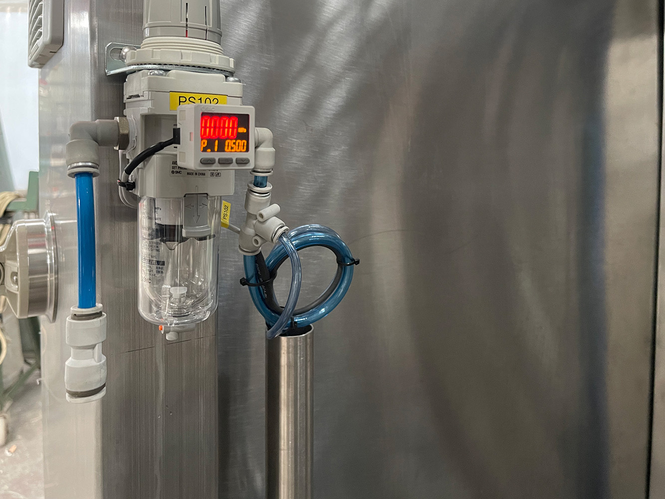 Two sight glasses are installed on the side of the SKE mash lauter tun for monitoring the differential pressure (DP) value in the grain bed, facilitating real-time tracking of the filtration status.
